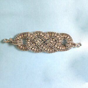 This bracelet is a stunning costume statement bracelet and it is well designed and comfortable to wear. It has brilliant sparkling rhinestones and braided chains. This versatile piece can be worn with everything from drees-up to casual. It is no longer available from S&D