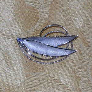 Stunning sterling silver pin! Textured leaves surrounded by swirls, one polished and one twisted.