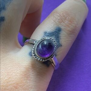 💛 Vintage Sterling Silver Cabochon Amethyst Ring