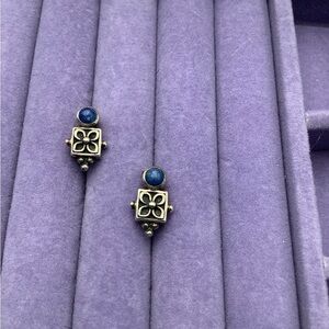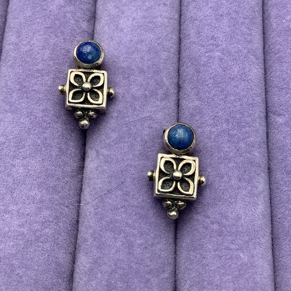Vintage Sterling Silver Earrings with Blue Lapis Accents