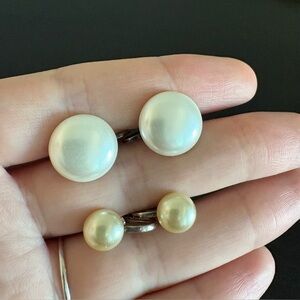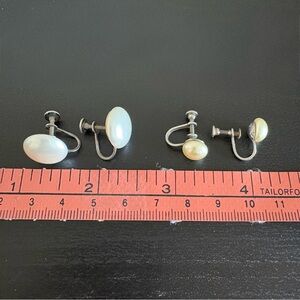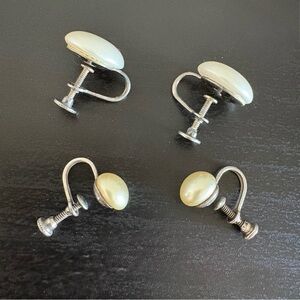 -2 pairs of sterling silver screw back clip on earrings with faux cream and white pearls