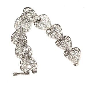 Vintage Sterling Silver Greek Ottoman Hand Crafted Filigree Heart Chain Link Bracelet