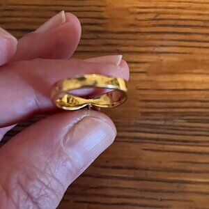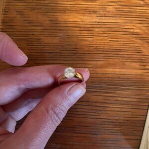 A beautiful petite antique ring. I believe it's a size 5. It belonged to my mother, which is why I was uncertain about its origins. Very pretty and classic setting. Comment with more questions and I'll do my best to answer! Selling because it doesn't fit and I have other pieces of hers that do. **please note I've updated this listing as I can see the stamp (925) and it is gold-plated sterling silver and I've since attached the photo!