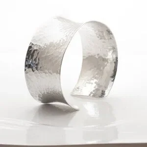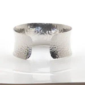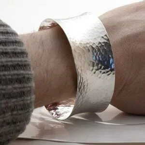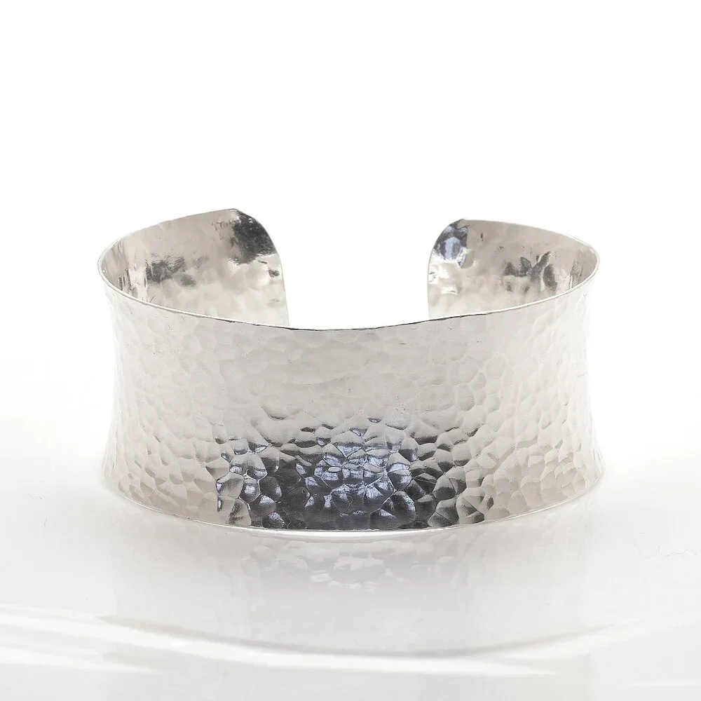 Vintage Sterling Silver Hammered Polish Wide Cuff Bracelet Stamped 925