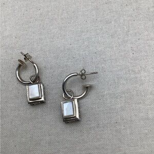 Vintage Sterling Silver Hoop Earrings with Mother Of Pearl Inlay