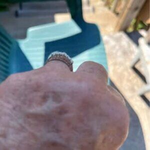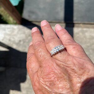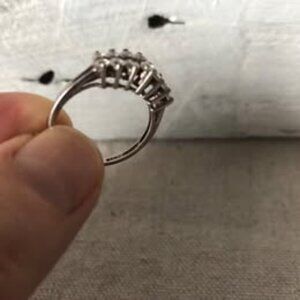 This vintage ring has a ton of sparkle and is marked Avon 925 on the inside of ring. It has a sterling silver setting. The double row of stones are cubic zirconia. It is a size 8 . The condition excellent and clean.