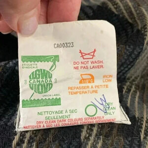 This is a great find! Combine the warmth of 100% wool and the neutral colours, and you have a great piece for winter. Very versatile! Dress it up with a skirt and heels or dress down with jeans. The fabric has blue, browns, grey and black. Like new condition.