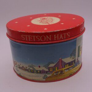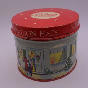 Vintage Stetson Hat Made in U.S.A. Christmas Scene Tin