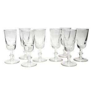 Elevate your holiday gatherings with this exquisite set of Vintage Steube Style Sherry Shot Glasses. Crafted with precision, these footed crystal clear glasses bring an elegant touch to your table setting. With a set of 8, you'll have enough glasses to accommodate your guests and create a truly memorable experience. Each glass is meticulously designed to capture the timeless charm of vintage style, adding a touch of class to any occasion. Perfect for serving sherry or any other shot of your choice, these glasses are a must-have for those who appreciate the finer things in life.