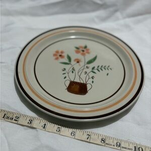Vintage StonewareFloral Ceramic Plate with Brown and Green Accents