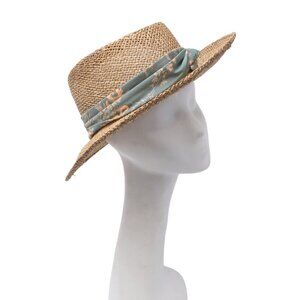 Add a touch of vintage flair to your outfit with this timeless Vintage Straw Panama Hat. Crafted with a woven brim and fabric band, this hat showcases the craftsmanship of the past. The ACTWU Union Made label ensures its authenticity and quality. The hat features a charming sage green and peach fabric band that adds a pop of colour and a stylish accent - big time Miami vibes!