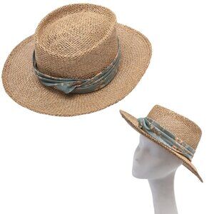 Vintage Straw Panama Hat Brim Woven ACTWU Union Made 80s Sage Peach Band Miami
