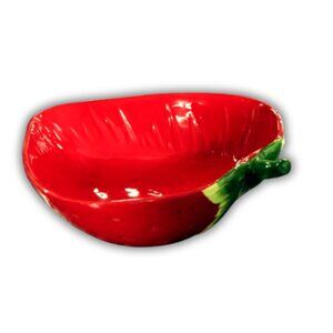 Charming ceramic strawberry-shaped bowl — perfect for serving snacks, fruit, or adding a touch of farmhouse décor to your kitchen.