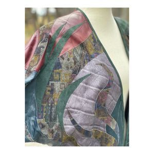 Vintage Streve Lamb Leather Coat Patchwork Open Front Oversized