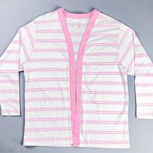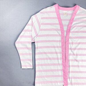Vintage Striped Cardigan | 90's Pink & White Women's Casual Jersey Sweater