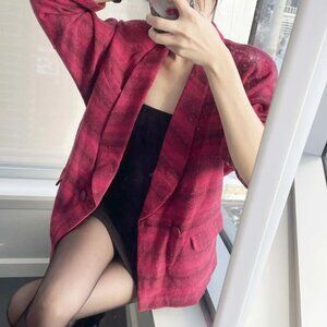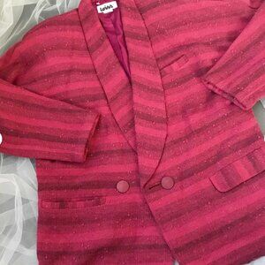 Vintage Striped Wool Blazer: 90s Italian Red Burgundy Jacket