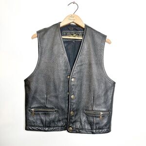 Vintage Structure Leather Vest with snap closure and Zipped Pockets | S