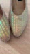 These beauties have an embossed snakeskin texture and a soft nude-beige tone that catches the light with hints of gold and a stunning iridescent glow — almost like a rainbow shimmer. They’re elegant, eye-catching, and full of character.