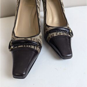 Step into timeless luxury with these vintage Stuart Weitzman heels, featuring an allover monogram jacquard canvas and leather trim. Designed with a sleek pointed toe, gold-tone buckle accent, and a classic 3-inch stiletto heel, these shoes are both elegant and collectible. Size 5, best for those with petite feet. A rare archival style that’s hard to find—perfect for vintage lovers or designer collectors.