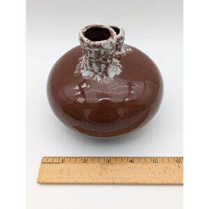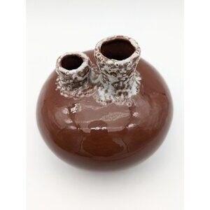 Vintage Studio Decor Vase with Glazed Brown and White Double Floral Holder