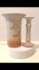 Add a handcrafted Québec touch to your décor with this vintage pottery set signed P. Sirois. The set includes a flared-rim vase and a matching candlestick, both decorated with hand-painted floral motifs in peach, orange, and green tones on a matte white glaze. The warm gradient at the base creates a subtle, natural effect typical of artisanal pottery from the 1970s–80s.