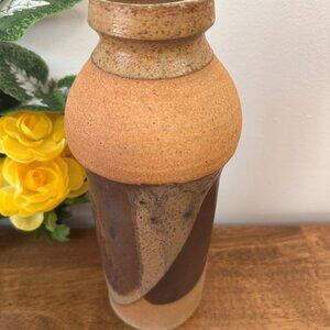 Vintage Studio Pottery Vase Abstract Drip Glaze Earth Tones Mid-Century Modern