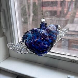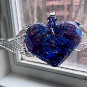 ⚡️Vintage Stunning Hand Blown Glass Blue and Purple Heart and Wings Art Piece ⚡️