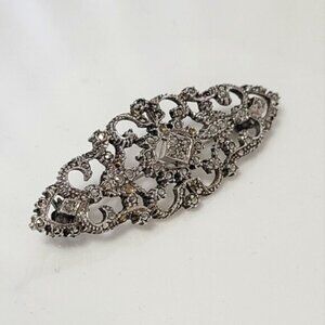 Vintage Stunning Sterling Silver Marcasite Crystal Embellished Brooch