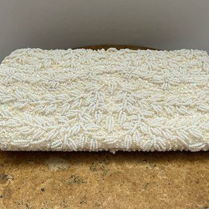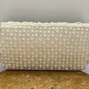 Vintage Women's White Sequin Beaded Handmade Front Flap Clutch Purse.