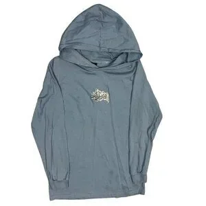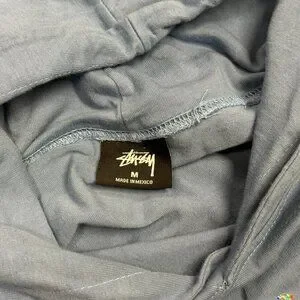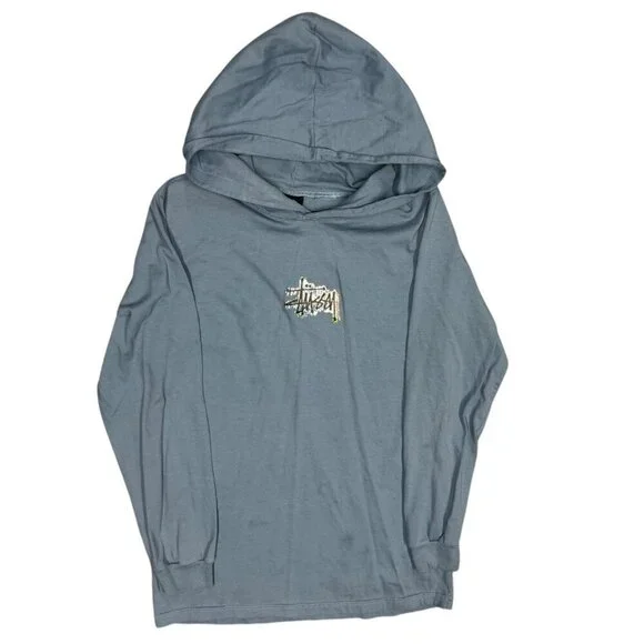 Vintage Stussy Hoodie Pullover Glitter Logo Blue Lightweight Cotton Medium