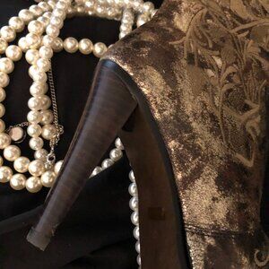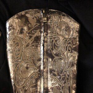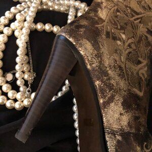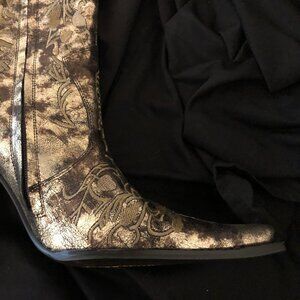 Vintage Style Gold Knee Length Leather Dress Boot
