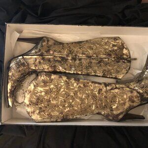 Fabulous never worn in box ladies "Electra" Gold Pointed Leather Soles.