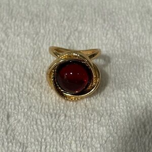Vintage Style Gold-Tone Red Cabochon Scarf Slide / Scarf Ring / Scarf Clip /Gift