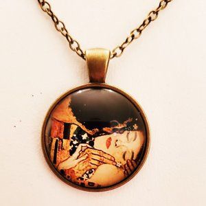 Vintage Style Necklace The Kiss Gustav Klimt Art Style Necklace / Art Ornaments