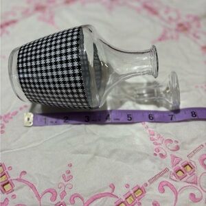 Chic glass decanter featuring a bold black and white checkered pattern. Ideal for enhancing any decor.