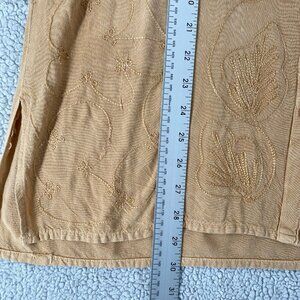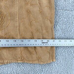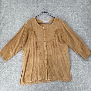 Womens button up shirt with a small rip under the arms, very easy fix see picture's brown in color with nice embroidery design