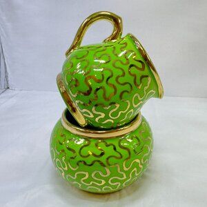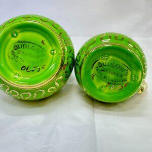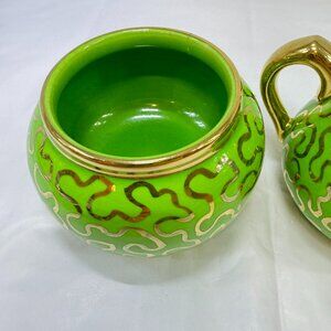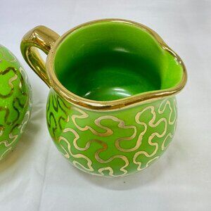 Vintage Sudlow Creamer and Sugar Tea Set Art Deco Green and Gold England