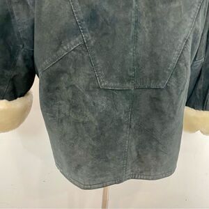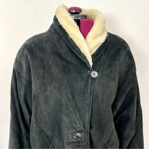 Vintage Suede Faux Fur Lining Oversized Jacket Mid Length Deep V-neck Medium