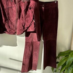 A gorgeous vintage suede jacket and pants set by Skott’ Suede in a beautiful deep plum color.