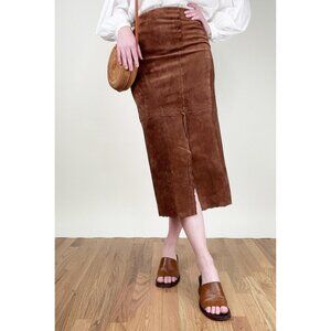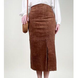 Vintage Suede Leather Boho High Rise Waisted Slit Column Hippie Bohemian 90s Y2K