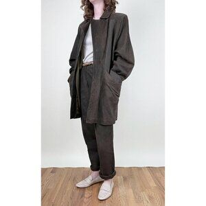 Vintage Suede Leather Matching Set Suit Oversized High Rise Long Unique Luxury