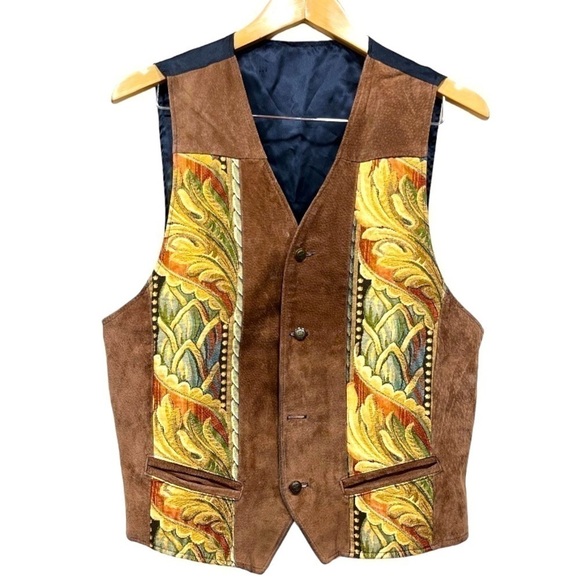 Vintage Suede and Tapestry button down vest approx size large