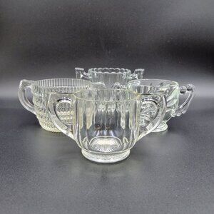 Vintage Sugar Bowls Condiment Servers Clear Glass Serving Kitchen Lot Of 4 Read.
