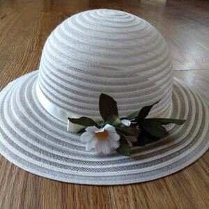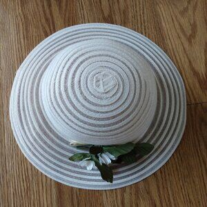 Vintage Sun Hat 20.75" White Daisy Flower Boutonniere Mesh Simple Summer Bride