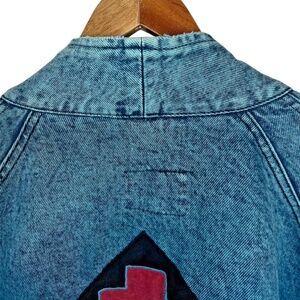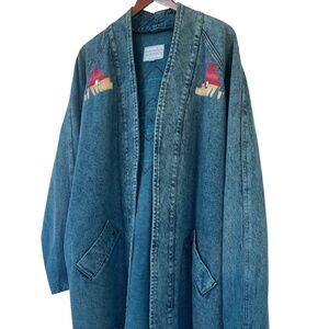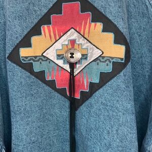 Vintage Sundance Denim Southwestern Concho Teal Aztec Print Acid Wash Coat USA L
