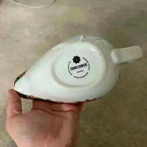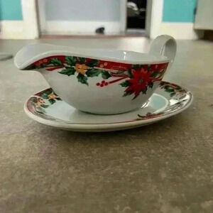 Gravy, boat and sauce are in the poinsettia pattern by sunflower China. In great vintage condition. Minor signs of wear.
