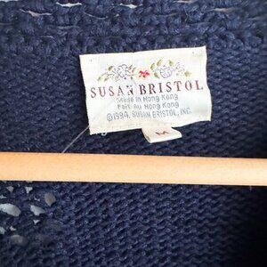 Vintage Susan Bristol Navy Blue Floral Beaded Cardigan M.