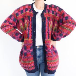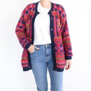 Vintage Susan Bristol Pink & Navy Chunky Knit Cardigan Shacket Med