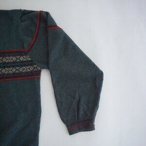 This Vintage Susquehanna Trail sweater captures an effortless Cabincore mood with its deep teal base, subtle melange texture, and the classic Fair Isle–inspired band that runs across the chest. The rich red detailing gives it that warm, heritage feel—something you’d expect to see layered in an editorial winter shoot or worn on a quiet getaway weekend. It has a timeless character that leans naturally into Old Money and Retro-inspired styling without feeling costume-like, offering an elevated take on outdoorsy comfort.