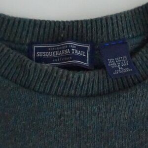 Vintage Susquehanna Trail Teal Cotton Sweater Cabincore Old Money XL